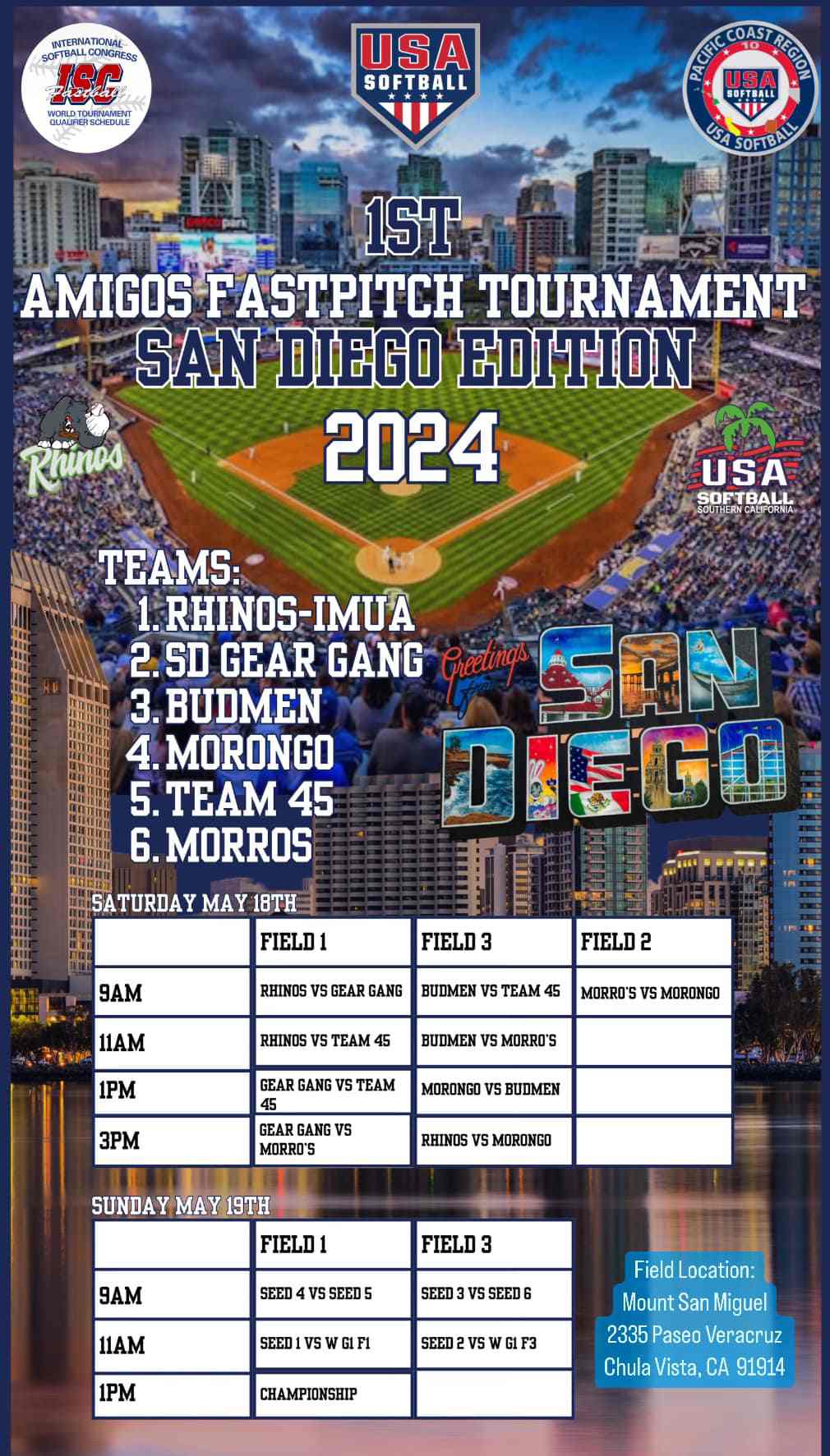 San Diego, CA - - 1st Amigos Fastpitch Tournament SCHEDULE