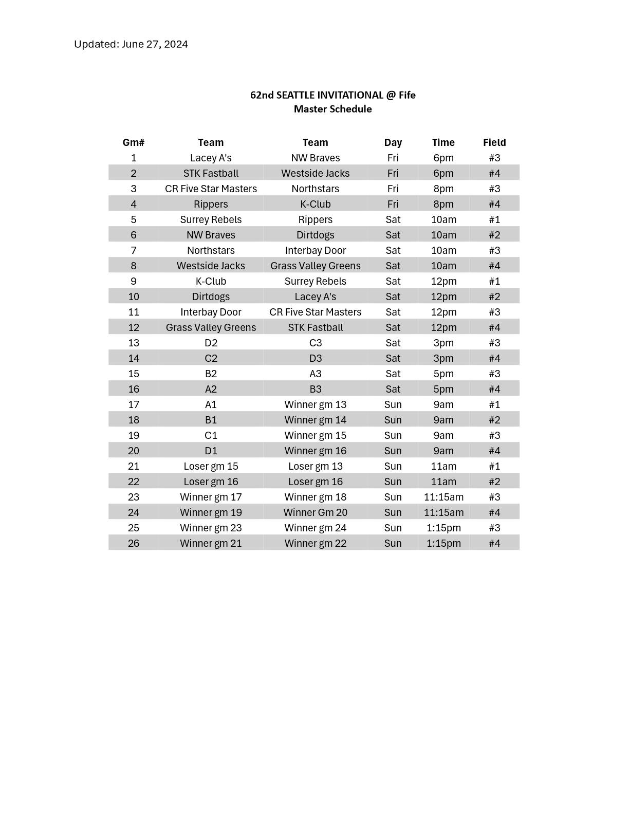 The 62nd(!) Seattle Invitational goes this weekend in Fife, featuring several teams competing in #ISCWT2024 including Lacey A's, STK, Surrey Rebels, Westside Jacks, Seattle Dirtdogs and more!