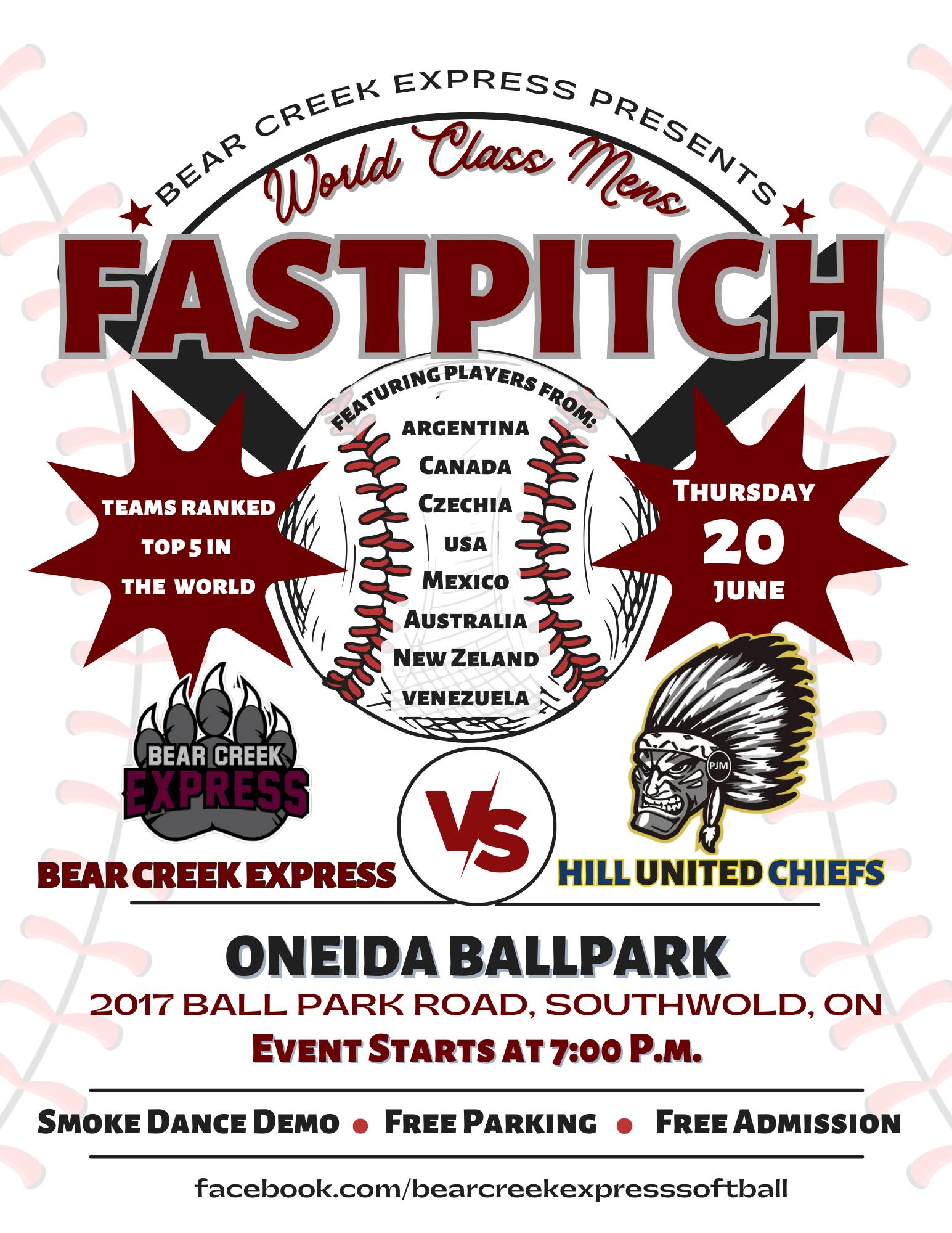 Bear Creek Express proudly presents a fastpitch game featuring two of the top 5 teams in the world! Date: Thursday, June 20