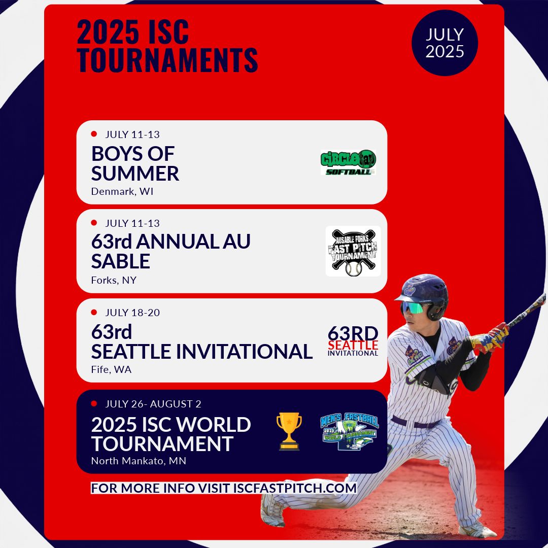 The ISC Fastpitch season is around the corner! With elite tournaments happening in May, June, and July, teams are getting ready for the 2025 ISC World Tournament in North Mankato, MN (July 26 - August 2)!